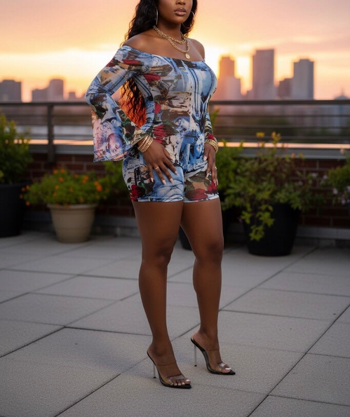 Mineral Wash Fringe Off Shoulder Jumpsuit