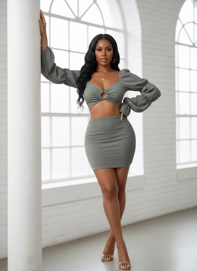Sleeve Flounce Cuff  Bodycon Skirt Set