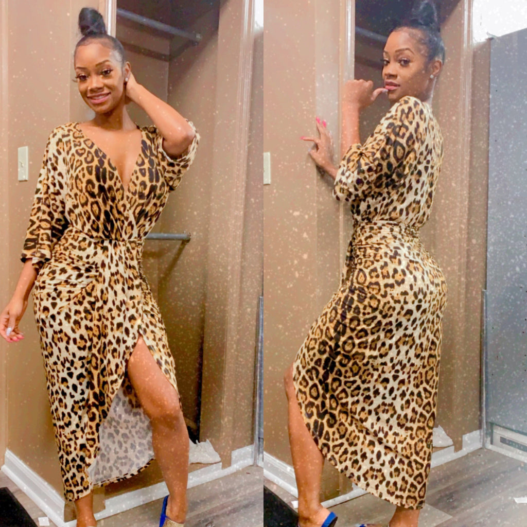 -LEOPARD VENETIAN RUCHED BODY CON DRESS -STRETCH FABRIC -WITH SKIRT LINED -Model IS 5'6"(34"/25"/34") WEARING A SIZE SMALL